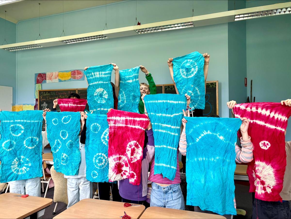 In addition to this community project, the students also designed and stitched their own cross-stitch motifs to adorn the flaps of their tie-dyed craft bags—practical companions they will continue to use through to Class 6.